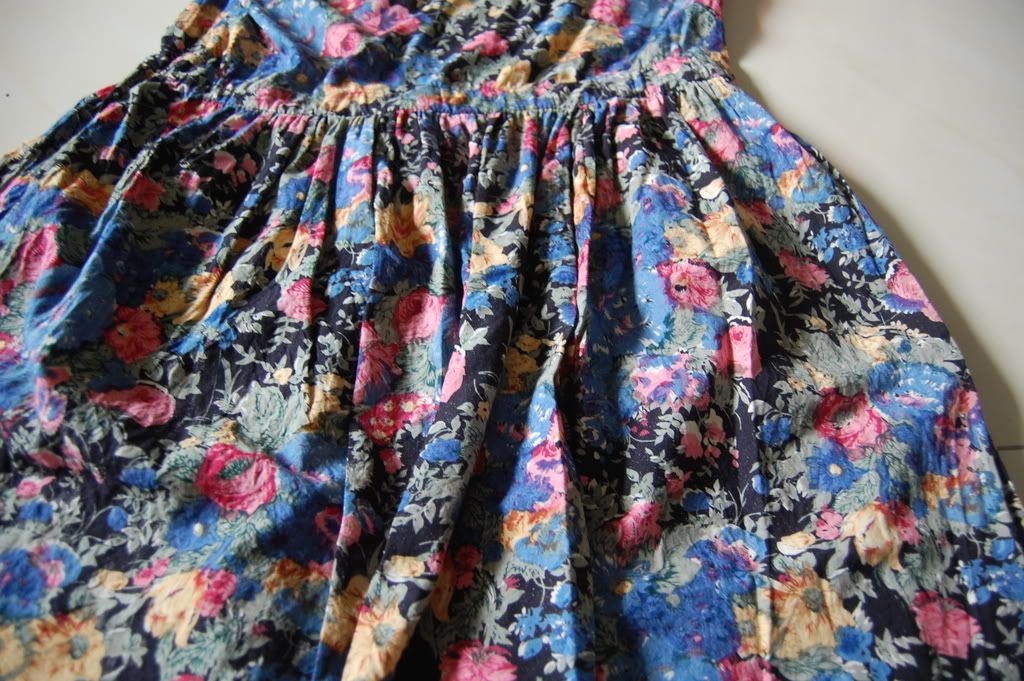 #4 Wild Child On first sight the cut of the dress reminds you of a little girl's frock. But the fabric design says otherwise. Black background with bright floral prints splattered everywhere. Short hemline, which is rare for old pieces.